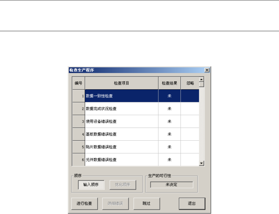 开始生产前点击菜单栏的“生产支援”/“检查生产程序”后,显示检查生产程序画面。
