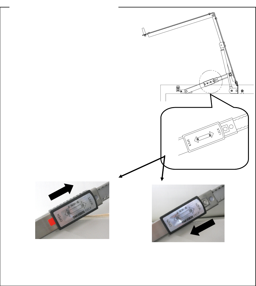 (LOCK)推动锁定杆并锁定。确认上了锁之后