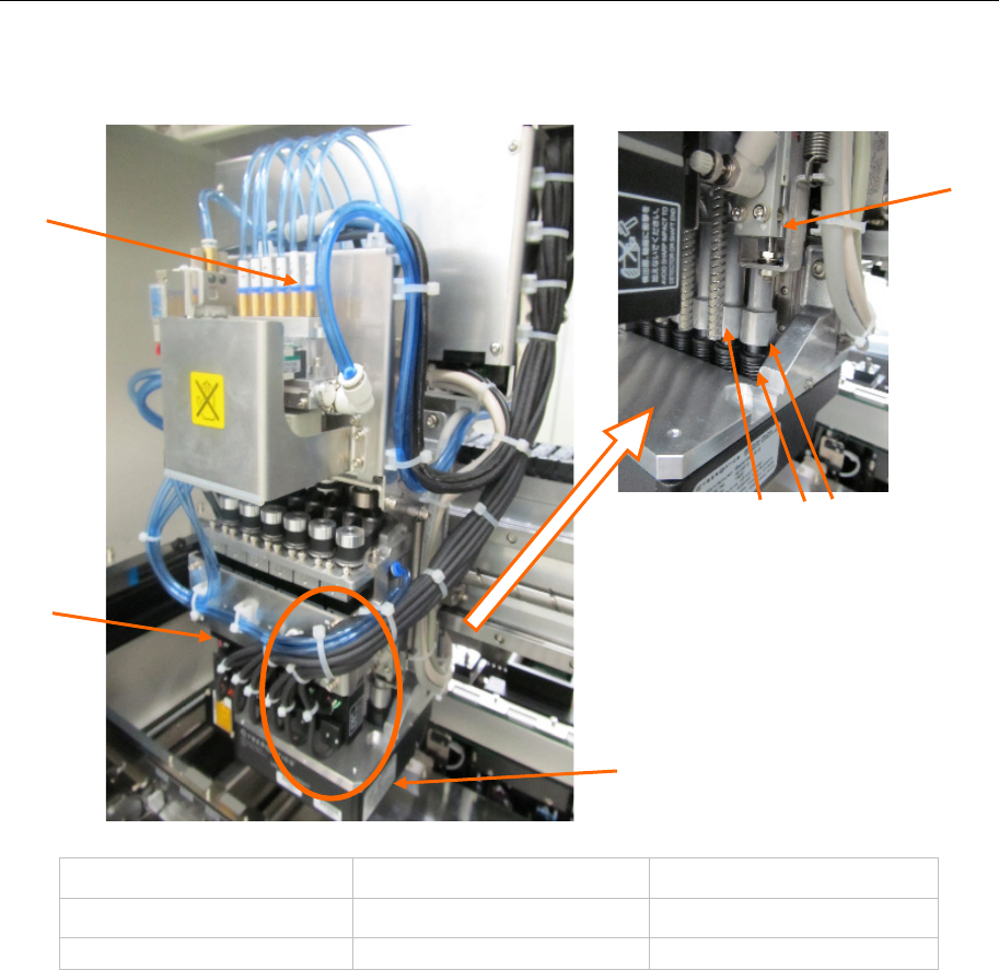 第 1 部 基本编 第 1 章 设备概要 1-2-1-3 贴片头单元的构成 贴片头由检测元件的位 置偏移、角度偏移的 LNC60 传感器以及可进 行上下驱动与旋转的 Z 滑 动轴构成。本机由以下结构组成。 ① 吸嘴外轴 ④ Z 滑动轴 ⑦ 贴片头上升汽缸 ② LNC60 传感器 ⑤ θ 轴马达 ③ Z 轴马达 ⑥ 滚珠丝杠 图 1-2-1-7 贴片头单元图 ② ③ ⑤ ⑦ ⑥ ①④ 1-8