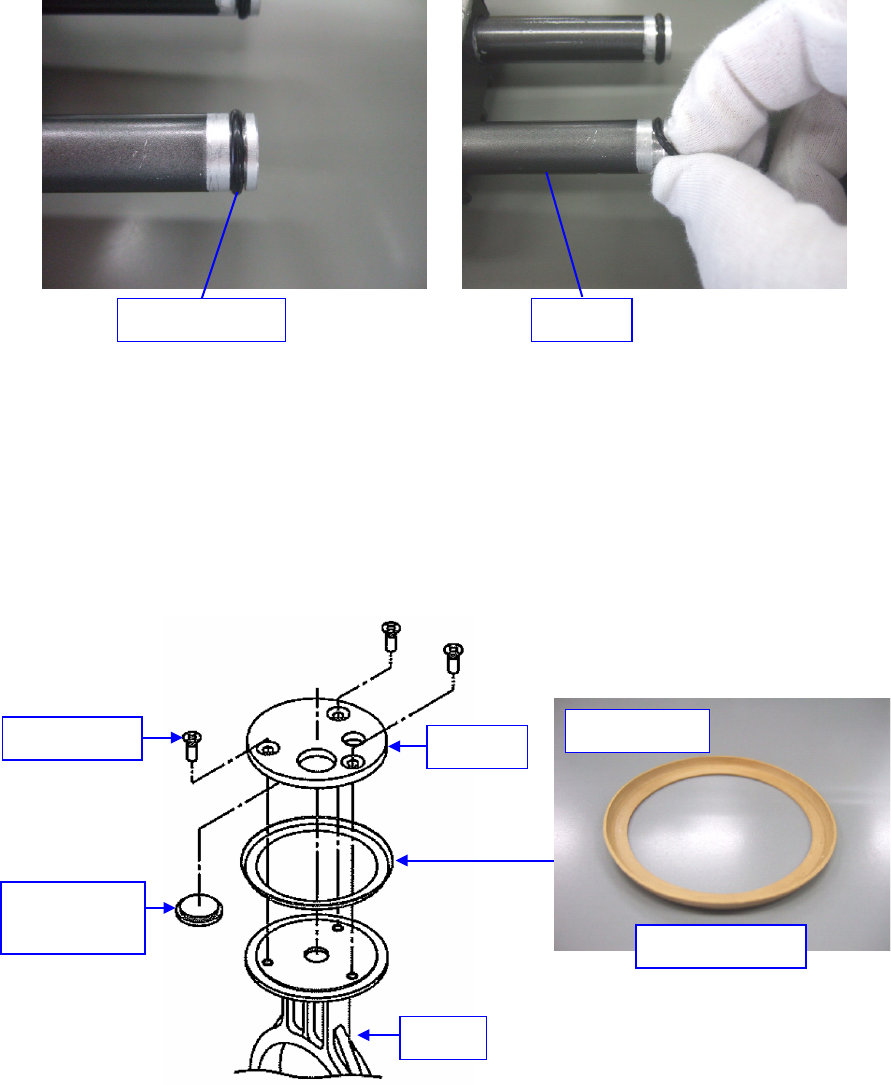 第 1 部 基本篇 第 3 章 维护 更换 O 环 S-67 1 ) 用与更换密封垫一样手法,取下 泵头 盖和泵头支架。 ※ 泵头支架与碗形密封气缸之间的 O 环 S- 67 有时会粘连。 此时如将泵头支架抬起,碗形密封气缸会被一起往上拉。 这种情况下,请撕开剥离之后再进行操作。 2 ) 更换碗形密封气缸上部的 O 环 S- 67 ,更换上新的 O 环。 ※ 盖子的安装, 请遵照密封圈的更换顺序实施。 在更换其它消耗部件时, 在不关…