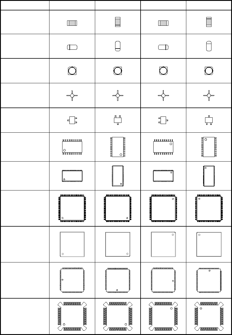 第 1 部 基本篇 第 4 章 制作生产程序 元件种类 0 ° 90 ° 180 ° 270 ° TSOP -1 TSOP -2 BGA 网络电阻 微调电容 单向引脚连接器 双向引脚连接器 Z 形引脚连接器 J 引脚插座 鸥翼式插座 带减震器的插座 4- 54