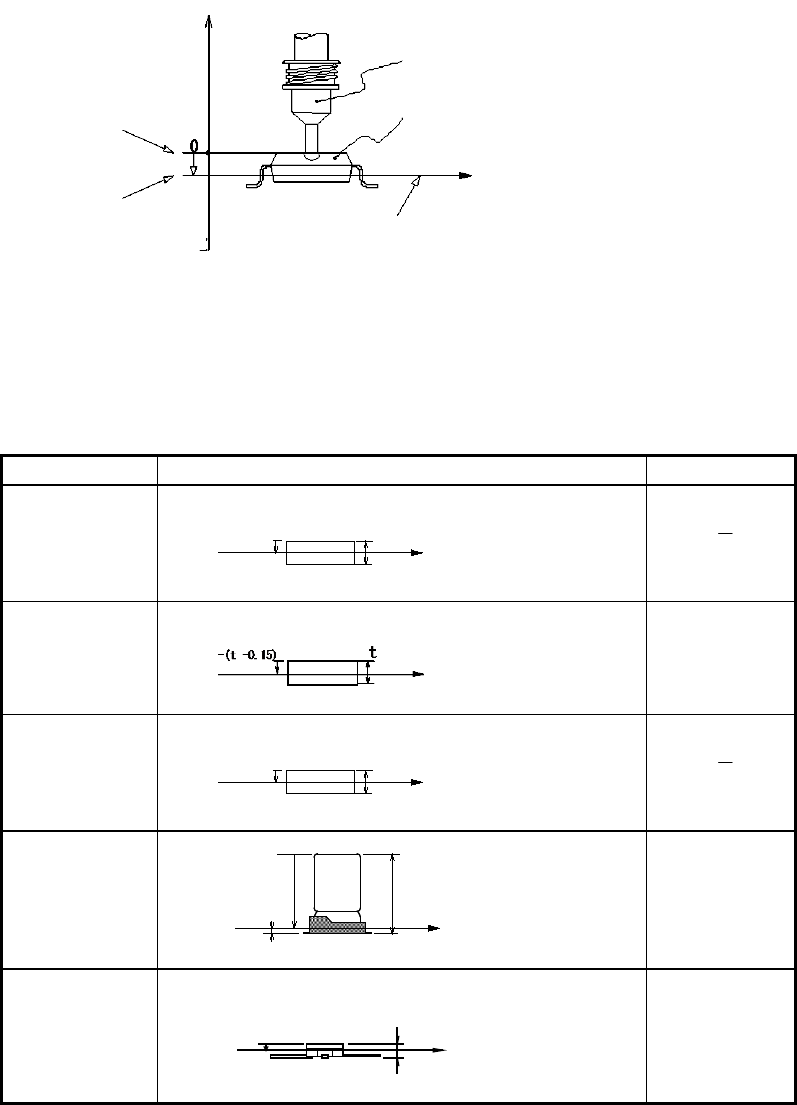 第 1 部 基本篇 第 4 章 制作生产程序 激光定中心的中心位置 贴片坐标点 激光定中心的中心位置 激光定中心的中心位置 贴片坐标点 注 1) “贴片偏移” 值, 请输入从激光定中心的中心位置到贴片坐标点的距离。 值的符号如下 ( 箭头为到贴片坐标点的距离 ) 例 ) 按下图贴片时,将贴片偏移输入为“ X =0 , Y=+3 ”。 注 2) 偏移值以贴片角度“ 0 ”为基准输入。 例 ) 元件的贴片角度为“ 90 ” 时, 假定贴片角…