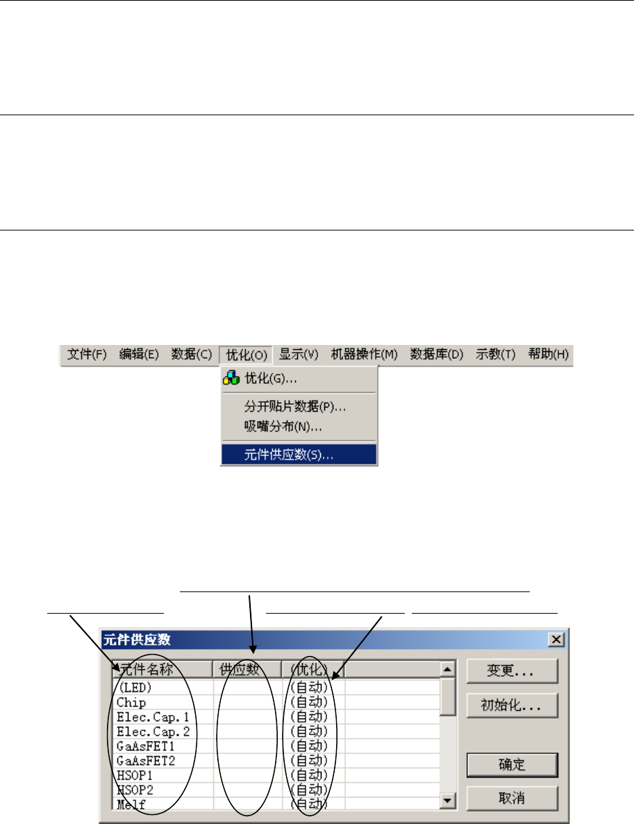 (2) 显示如下元件供应数画面。