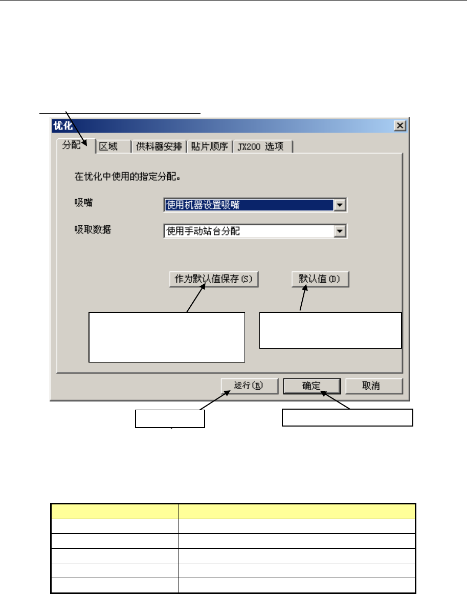 第 1 部 基本篇 第 4 章 制作生产程序 ( 1 )分配 图 4-4-1-2- 2 优化 1) 吸嘴 选择用“机器设置设置吸嘴” , 或已优化的吸嘴配置。 ①全部自动分配 : 忽略机器设置的吸嘴设置,优化吸嘴配 置。在这种情况下,生产节拍加 快,但需变更机器设置,准备工作可能多会花时间。 ② 使用固定吸嘴,空 ATC 上自动分配 :继续使用机器设置的 固定吸嘴,根据 ATC 空白部优化 结果 , 有时要追加配置必要的吸嘴。一般在吸嘴…