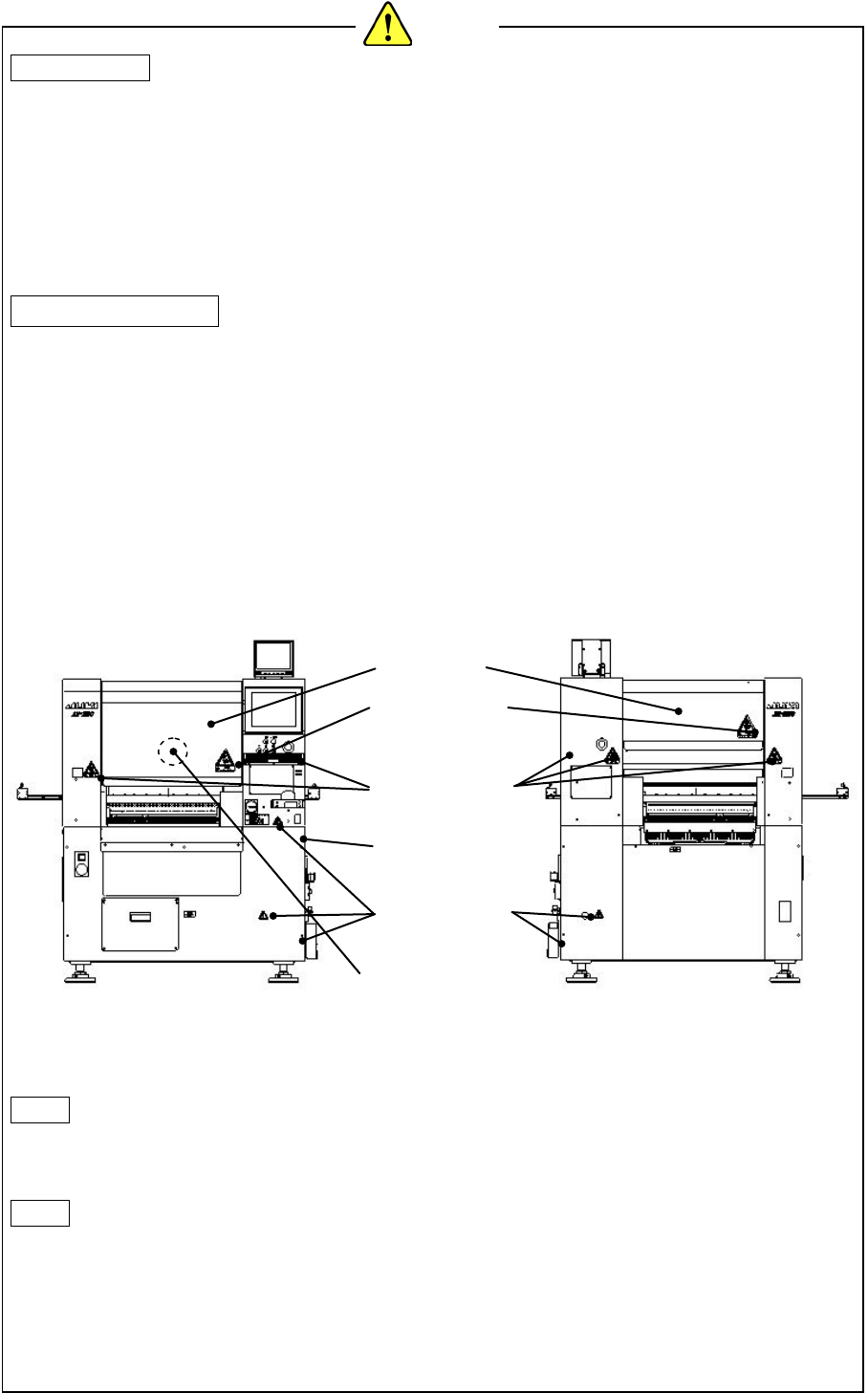 贴在机器上的警告标识,请正确粘贴,使之醒目可见。若发生剥落或污损,请与本公司联系,