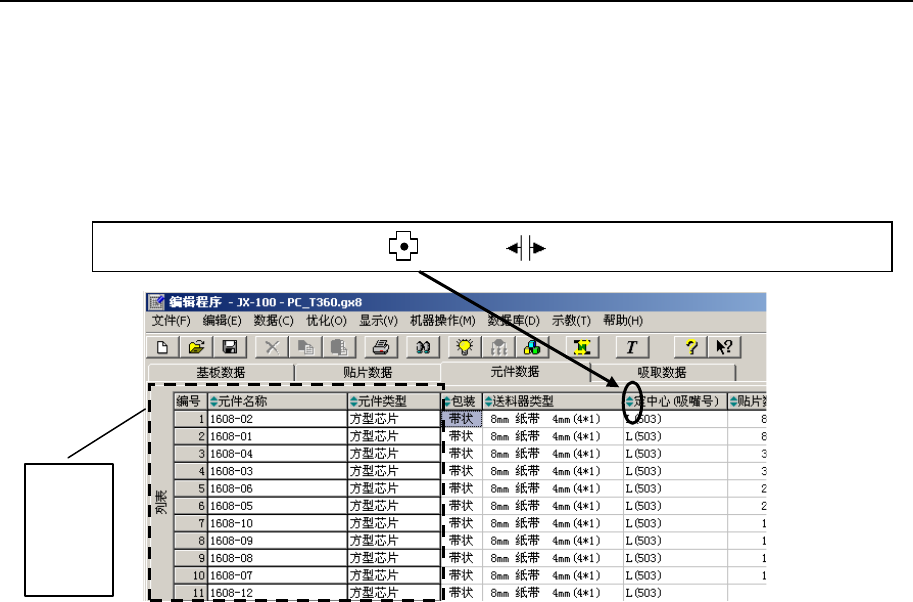 在贴片数据画面等列表上,可以调整单元格的宽度。