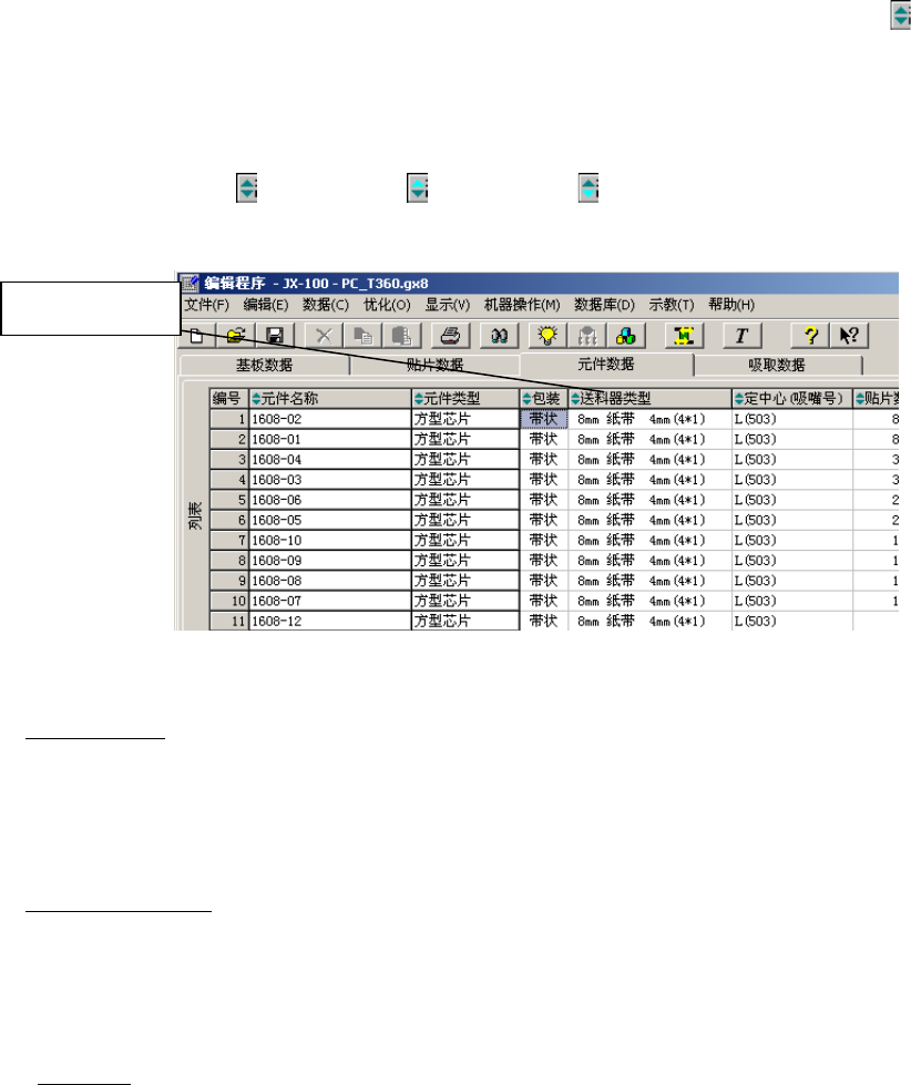 元件名称、包装状态、供应设备、供应(号码)均可做为排序键,使之显示出排序数据。