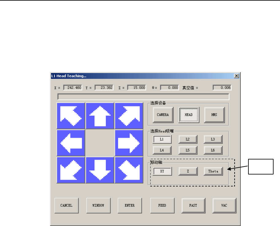 贴片头示教时,可选择 XY 轴、Z 轴、