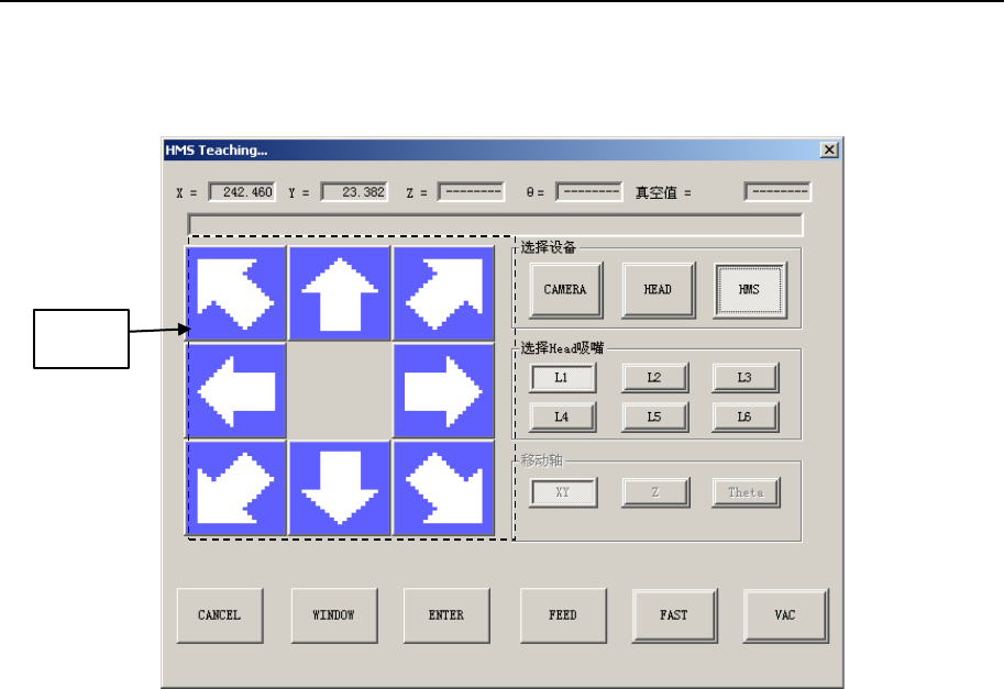 按移动方向的按钮时,HMS 会向该方向移动。