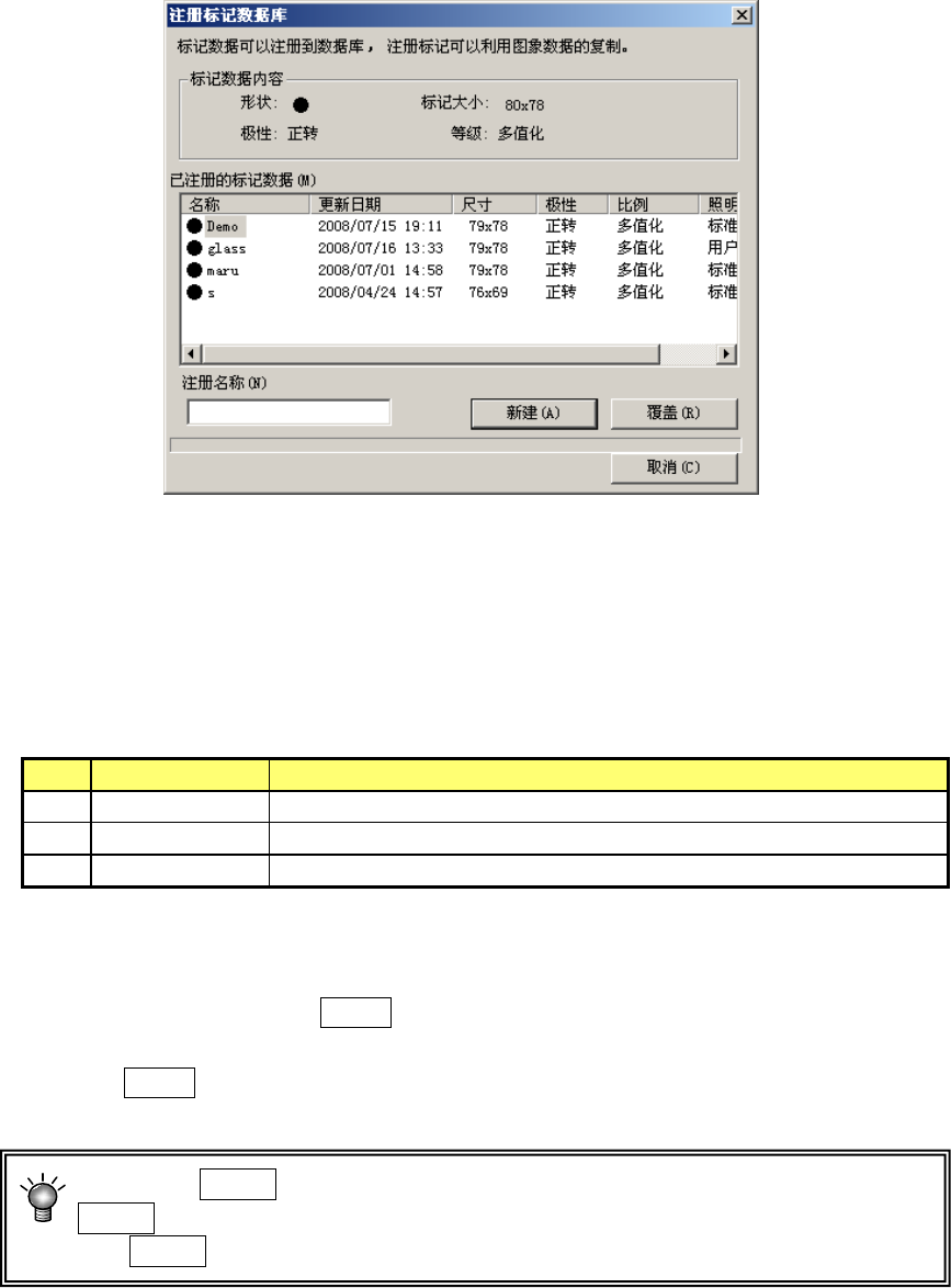 要把示教的新数据注册到标记数据库时,请输入注册名称,按下<新建>按钮。