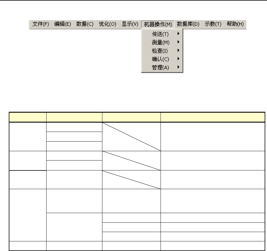 各项菜单项目及子菜单的功能概要。