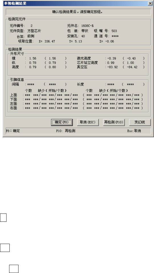 使检测结果生效,将结果值储存到元件数据中。然后返回原来的单独检测条件的设置