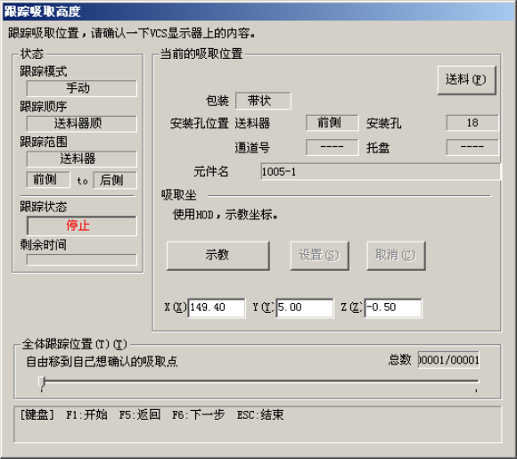 执行后,在各吸取位置(高度)跟踪中显示如下的画面。