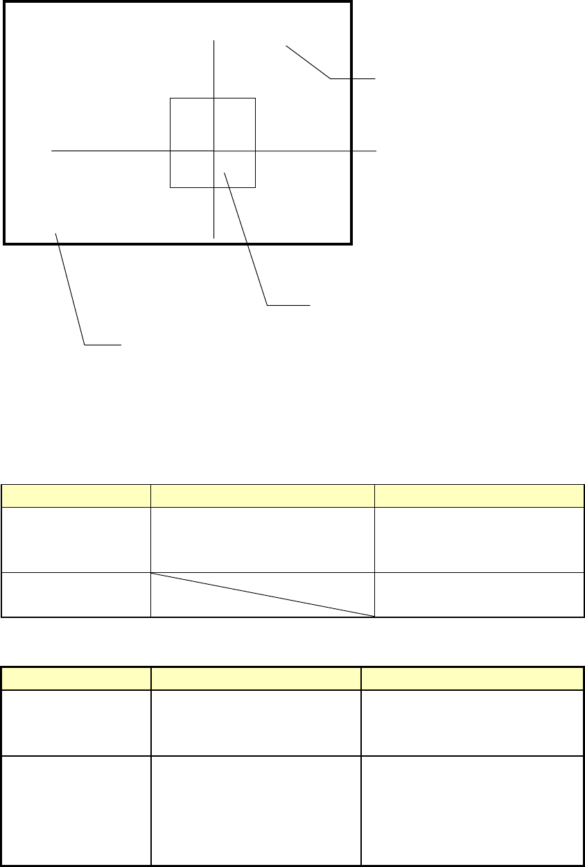 根据元件尺寸,显示在监视器中的元件中心及四角的显示如下所示有所不同。