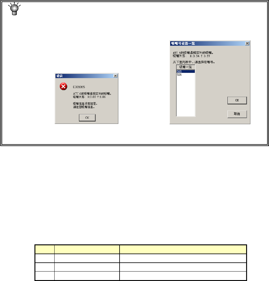 所获得的吸嘴外形不符合规定时,会显示如下的未注册的吸嘴信息。此时,请根据