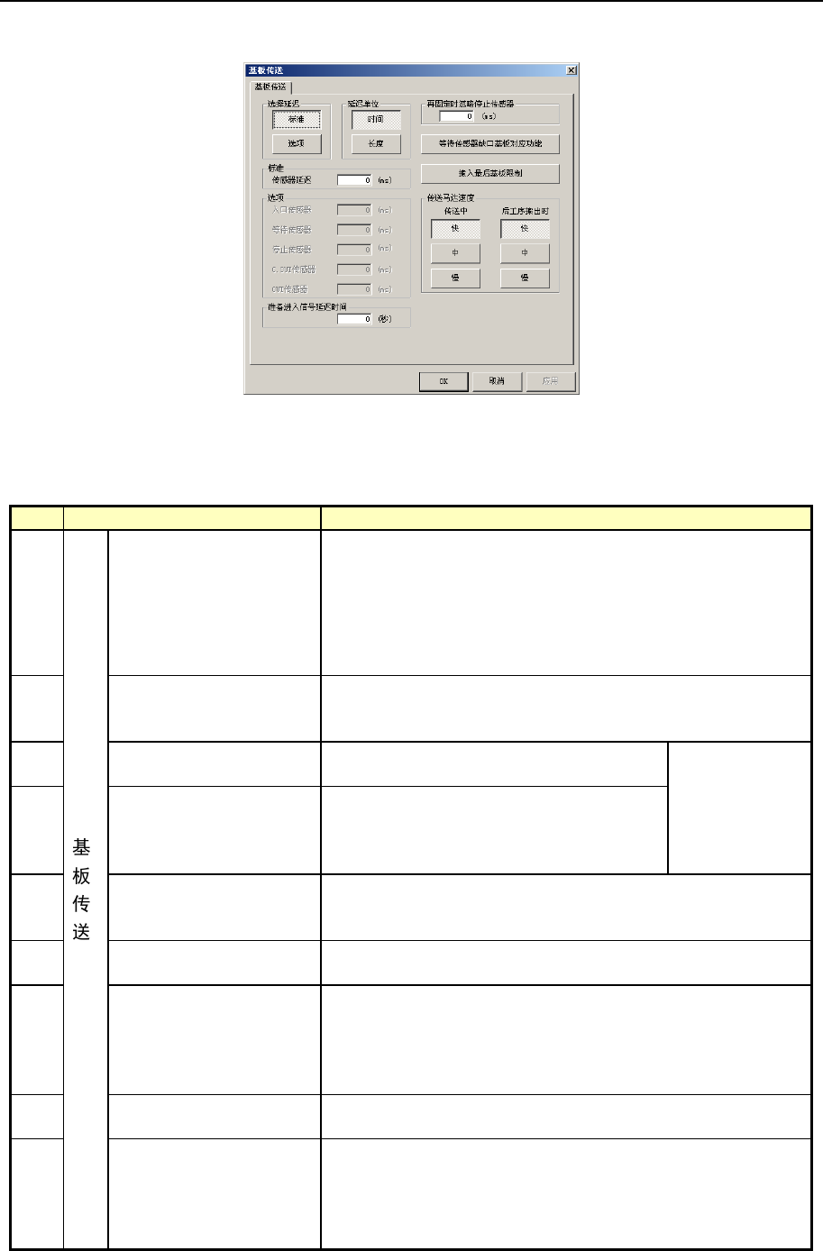 选择“基板传送”后,显示如下“基板传送”的设置画面。
