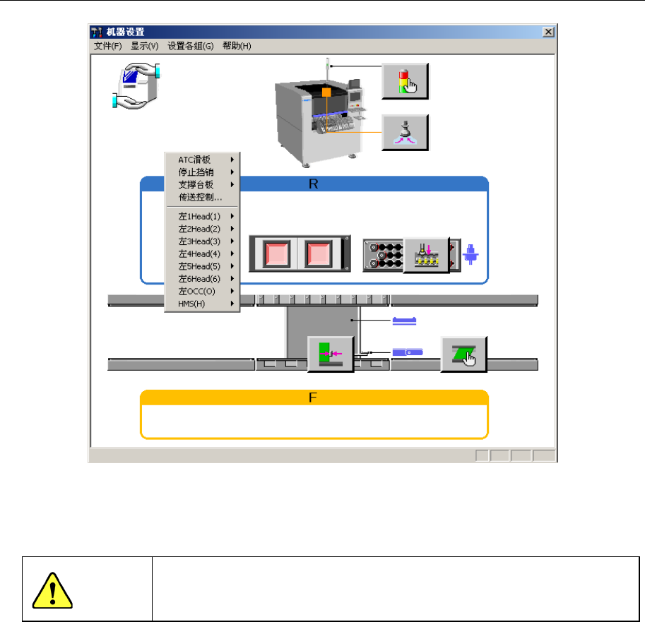 第 2 部 功能详细编 第 6 章 机器设置 6-6 机器设置 的弹出菜单 在机器设置的输入中需要驱动 机器时,点击鼠标的右键或按“ F9 ”键,启动弹出菜单。 图 6-6-1 机器设置的弹出菜单 启动弹出菜单 ,与手动控制的贴片头控制菜单一样,可进行设备操作。 从弹出菜单中选择项目后, 轴即开始移动。 在选择前, 务必确认无人在进 行装置内部的作业。 另外, 为了防止人身伤害, 在操作中切勿将手伸入设 备内部,头和脸也不要靠近。 有关…
