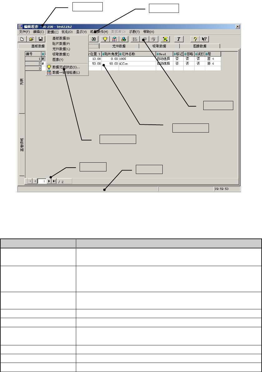 ⑦状态栏 显示菜单项的说明以及数据的输入范围等。