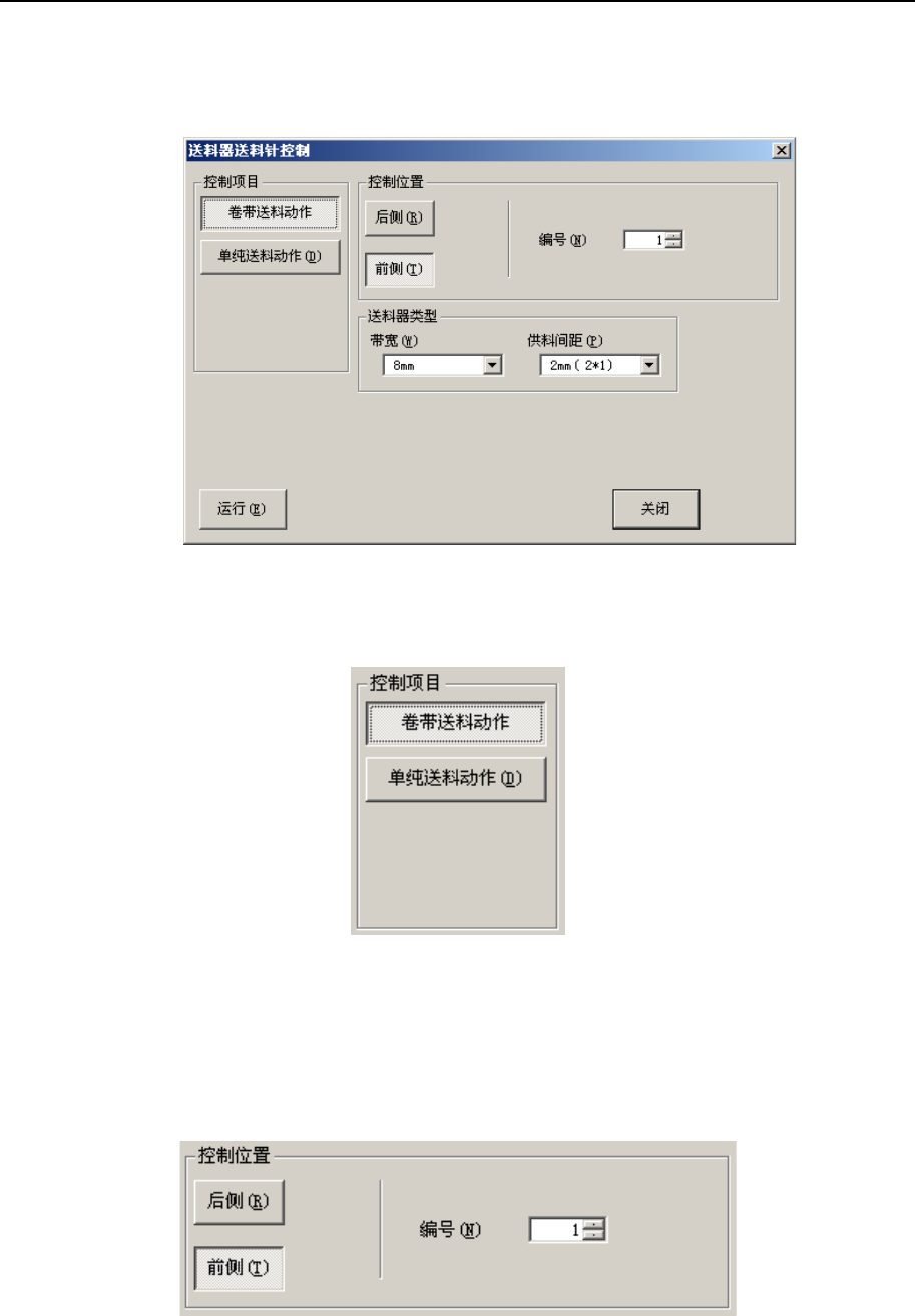 在控制项目中选择了“卷带送料动作”时,可按控制位置(按钮)及编号(编辑框),选择所