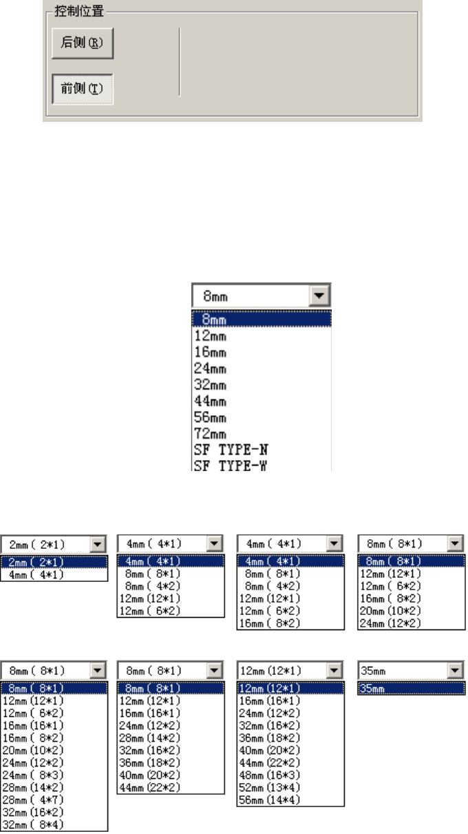 在控制项目中选择了“卷带送料动作”时,要在组合框上选择送料带的宽度和间距。