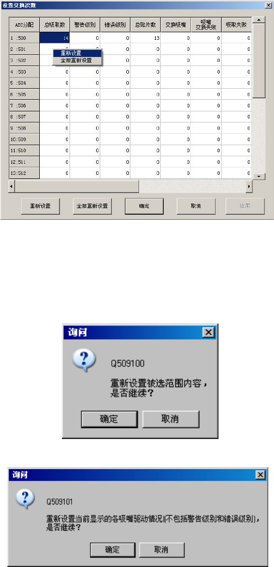行信息。(总吸取次数时,ATC编号1应输入91,ATC编号2应输入103)