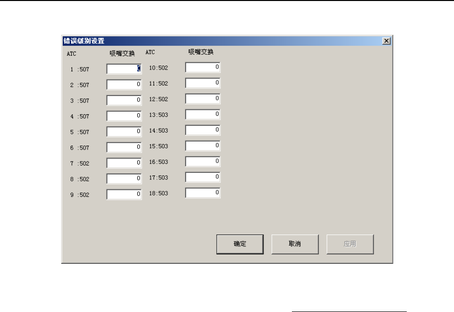 从菜单栏中选择“工具”/“错误级别设置”/“各吸嘴”,则显示图8-3-4-1。