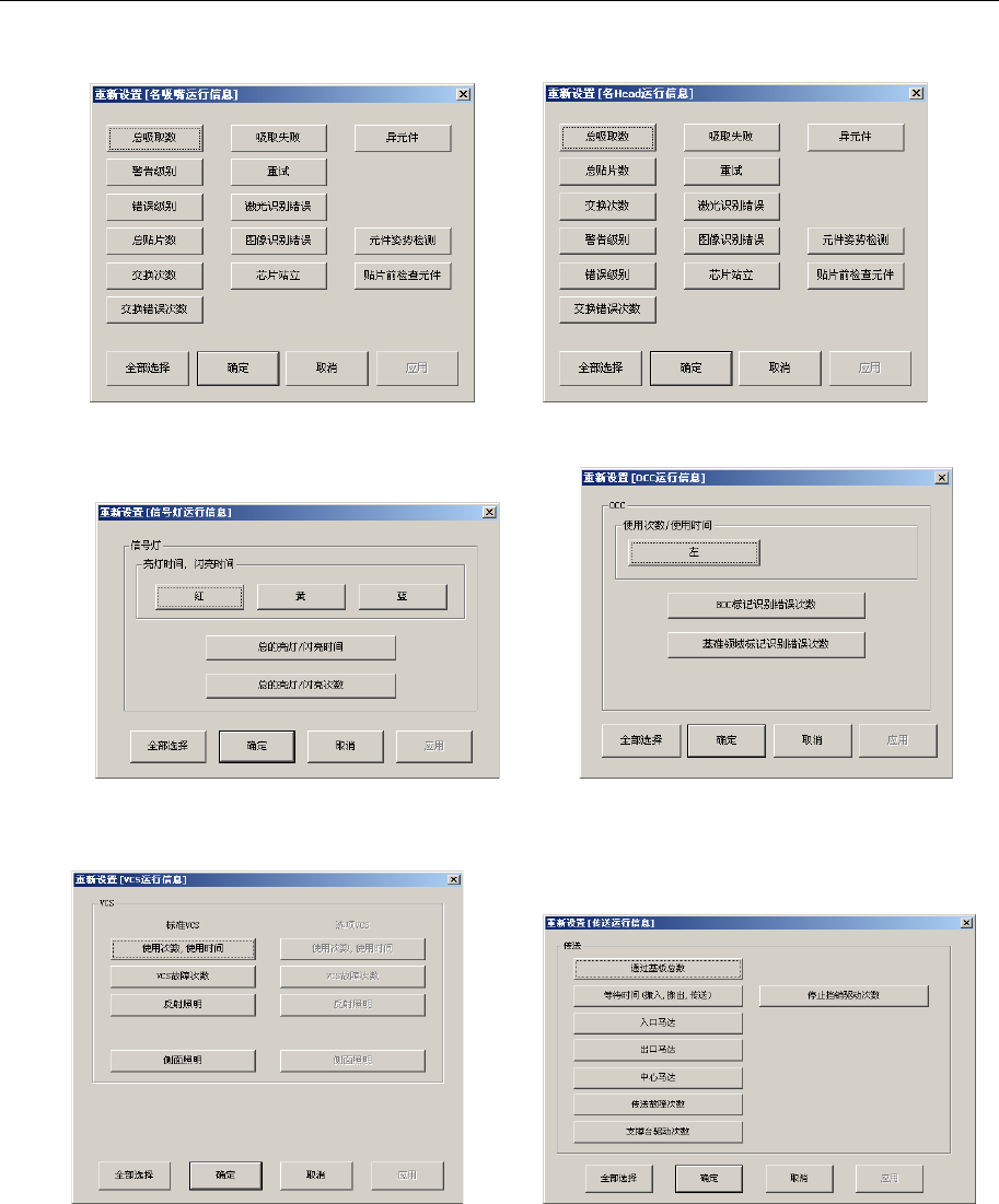 图 8-5-12-2-1 设置各吸嘴运行信息画面 图 8-5-12-2-2 设置各 Head 运行信息画面