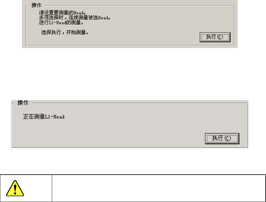 第 2 部 功能详细篇 第 9 章 自动校准 (2) 设置方法 按照操作内的指示,对用贴片头选择框按钮选中的贴片头进行设置。 1) 选择“确定”后,设置值生效。 ( 此时不保存设置值。 ) 2) 选择“取消”后,设置值无效。 操作方法 按照指示进行操作,可自动获得设置值。 图 9-2-3-3 在“设定 Head ”上选择后,进行设置。 ·请选择“执行”。 选择“执行”后,即开始测量。 图 9-2-3-4 警告 单击“执行”后,轴会移…
