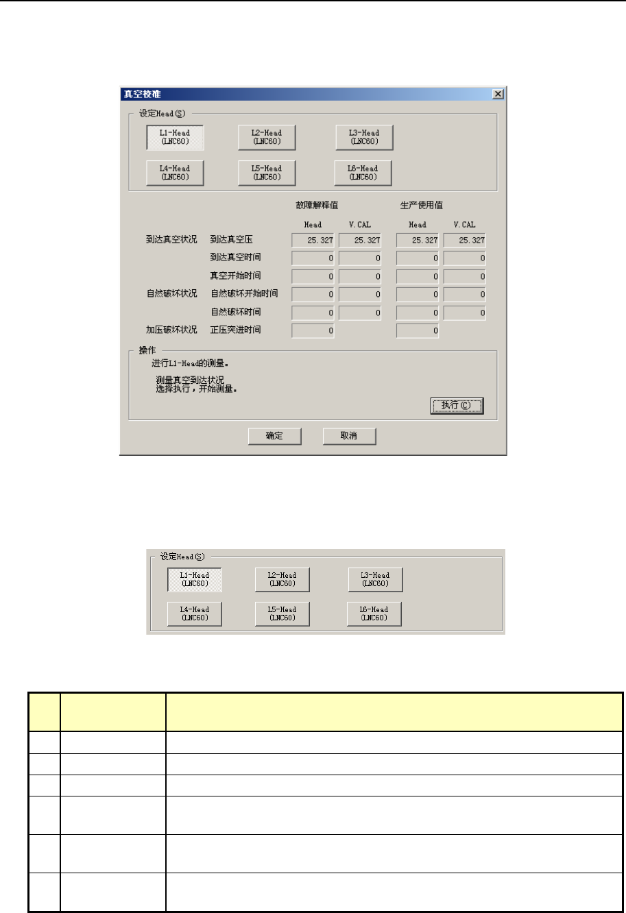 ① 设定Head将移动到真空校准上,测量3次真空到达状况。