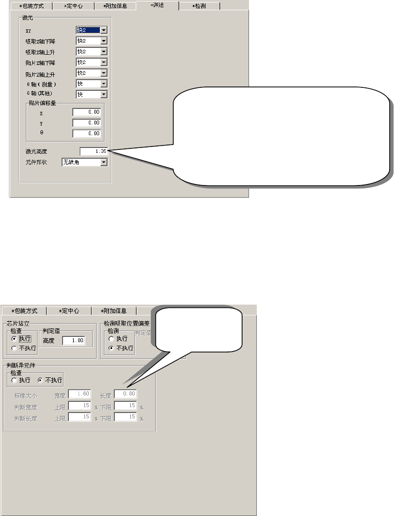 通常吸嘴的“激光高度”中应输入从元件上面(表面)到激光投射面的距离,而夹持吸