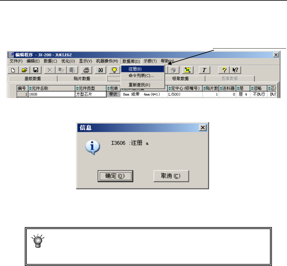 在“编辑程序”时对生产程序文件的元件数据逐一进行注册。