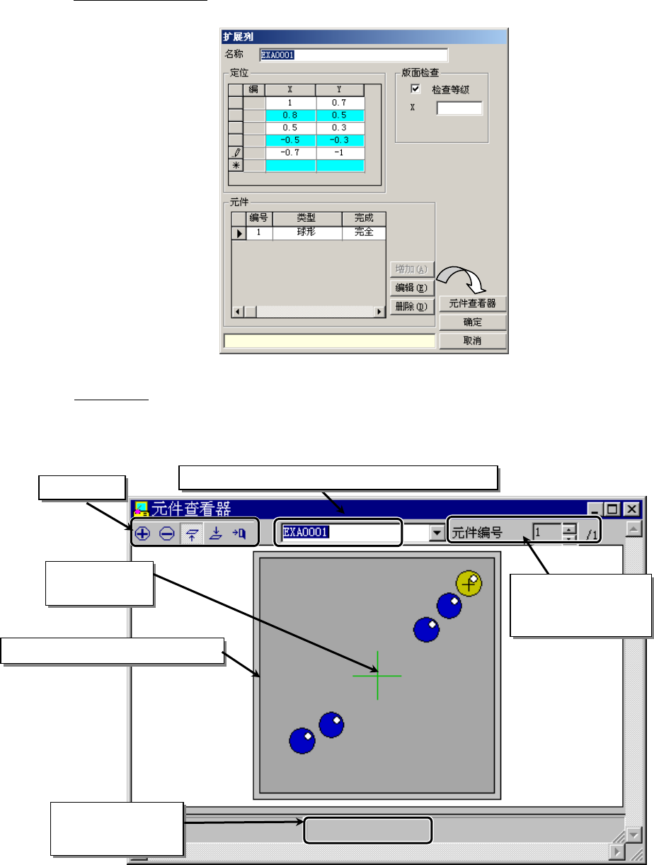 显示扩展列数据的配置图形。用旋转控制器移动定位编号,单击画面上的元件要素,则