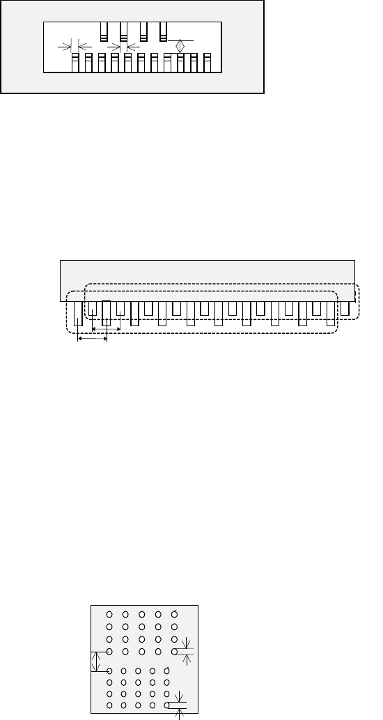 · 在引脚的长度方向上有其他引脚组的情况下,必须定位在离开 1 个引脚宽度,且相隔 1mm