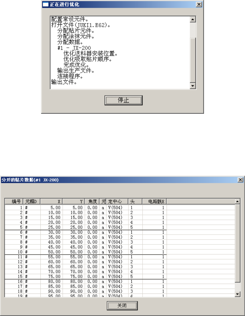 LNC60 贴片头。选择了“优化”-“分开的贴片数据”之后,显示如下画面,可以确认优化结果、图