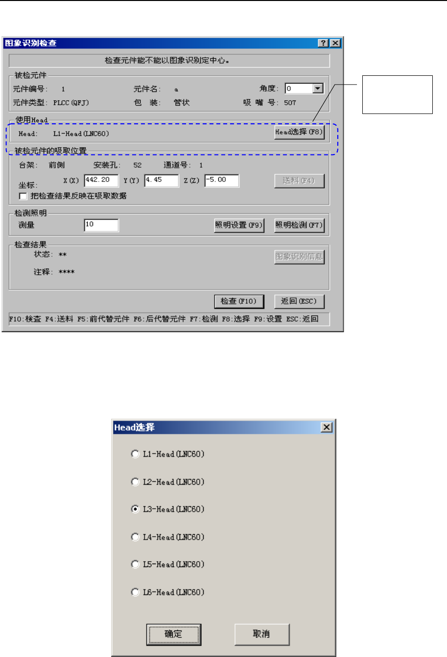 头进行图像识别检查时,请按使用的贴片头的“Head 选择”按钮。