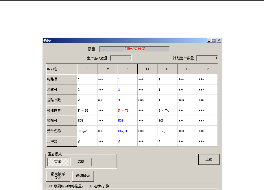 在操作选项中选中“发生错误时暂停”的情况下,从如下暂停画面可以进行重新显示/保存发生图像