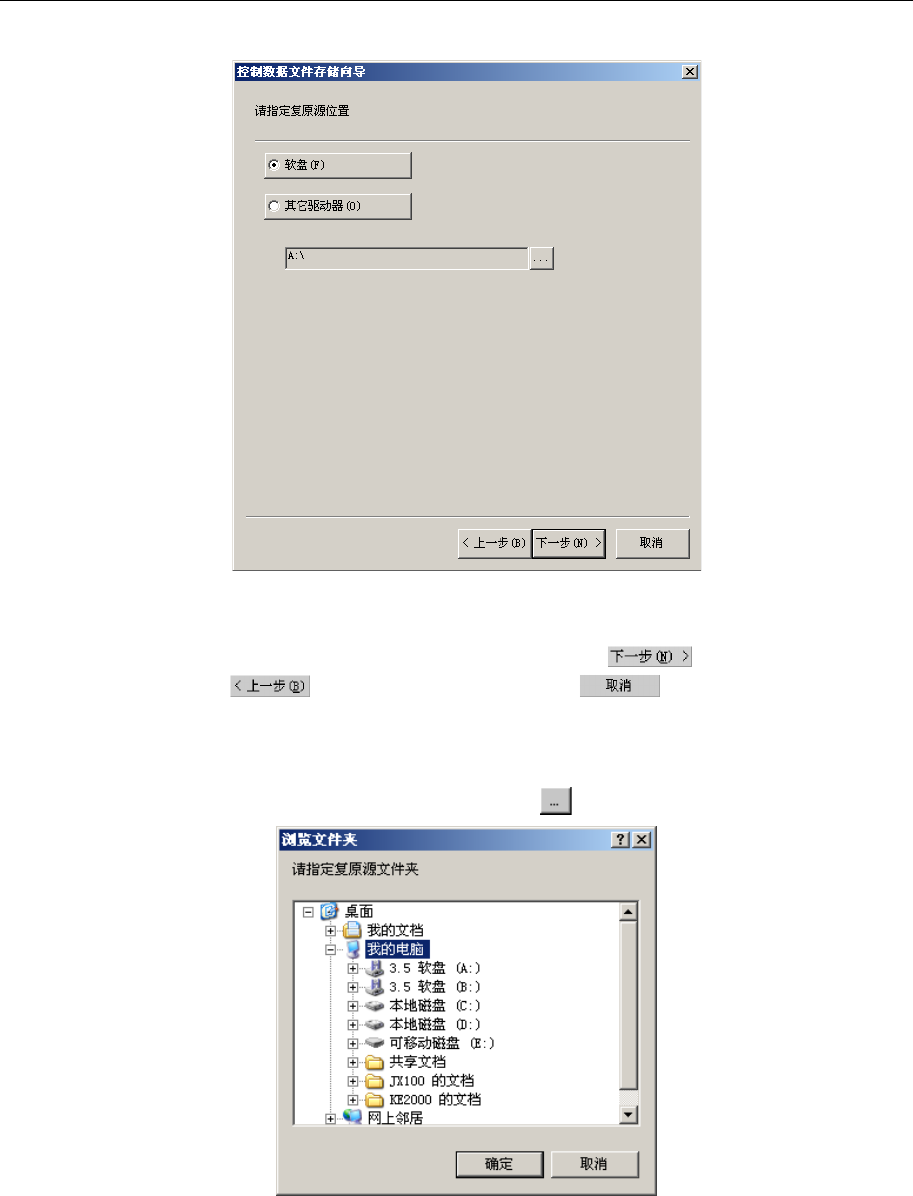 选择恢复源位置([软盘]或[其它驱动器])后,请按 按钮。要变更操作内