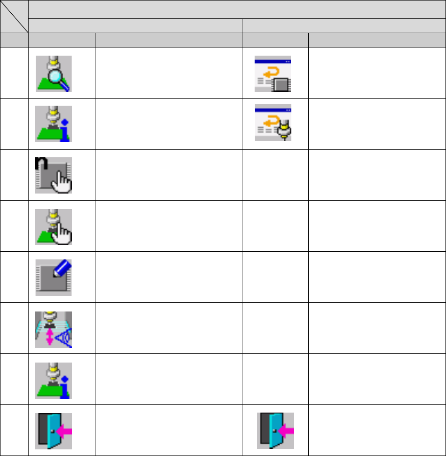 第 1 部 基本编 第 1 章 设备概要 1-4-2-2 生产 生产部分根据需要使用 3 种命令按钮。 换页 ( Ⅰ ) 1/2 2/2 No. 图标 名称 图标 名称 1 生产条件画面 打开文件 2 生产管理信息 ( 综合 ) 覆盖保存文件 3 元件数量设定 删除继续生产信息 4 操作选项 生产支援 贴片跟踪 5 数据变更 生产支援 程序检测 6 激光高度检测 重试一览 未贴片一览 7 传送 I/O 状态 重试一览 供给设备信息 8 …