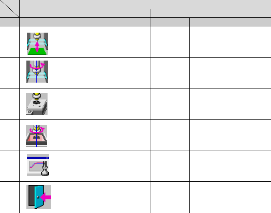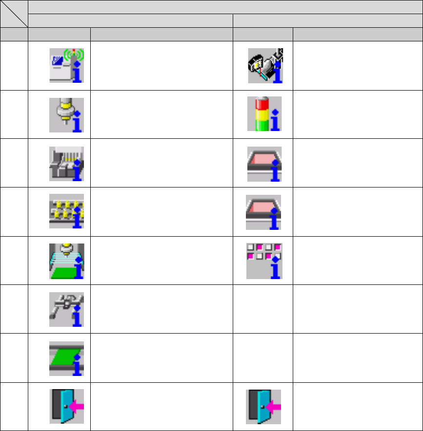 第 1 部 基本编 第 1 章 设备概要 1-4-2-6 设备运行信息 换页 第一页 第二页 No. 图标 名称 图标 名称 1 机器运行信息 HMS 运行信息 2 各吸嘴运行信息 信号灯运行信息 3 各贴片头运行信息 OCC 运行信息 4 ATC 运行信息 VCS 运行信息 5 激光运行信息 非同步运行信息 6 轴运行信息 7 传送运行信息 8 退出 返回桌面。 退出 返回桌面。 1- 68