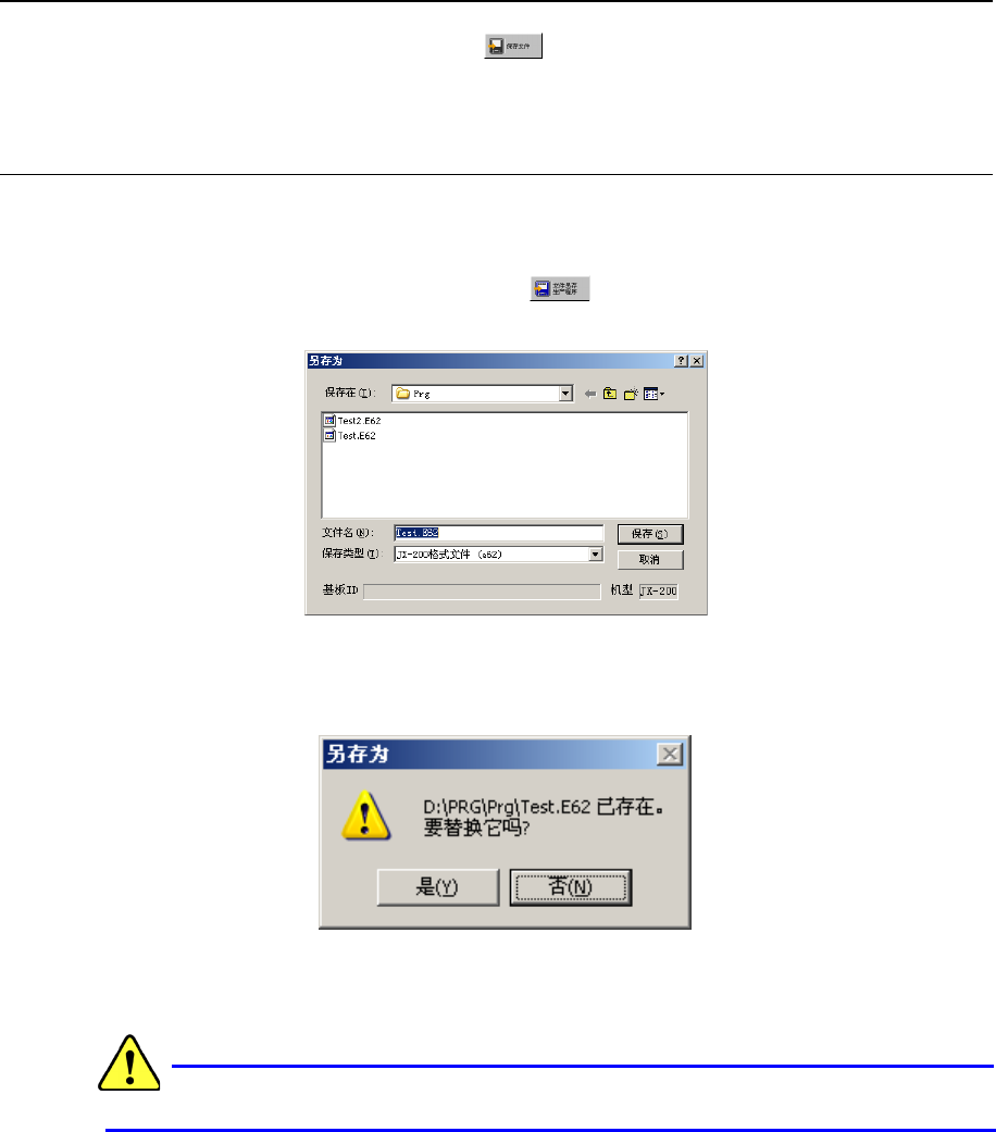 第 1 部 基本编 第 1 章 设备概要 1-5-3 保存 保存已制作的生产程序。 选择“文件” / “保存” , 或按命令按钮 , 则可执行该命令。 1-5-4 另存为 将编辑后的生产程序保存于其他文件夹,或更改文件名保存时 , 选择此项。 < 步骤 > ① 选择“文件” / “另存为” , 或按命令按钮 。 ② 在“另存为”画面上指定文件夹和文件名 , 单击「保存」 。 图 1-5-4-1 文件另存为 若指定已有的生产程…