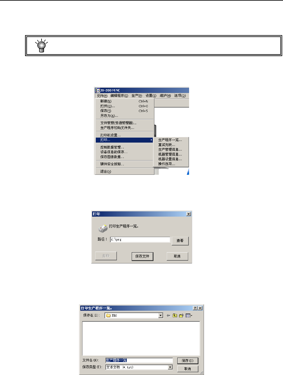 打印保存在指定路径(=文件夹)中的生产程序一览。