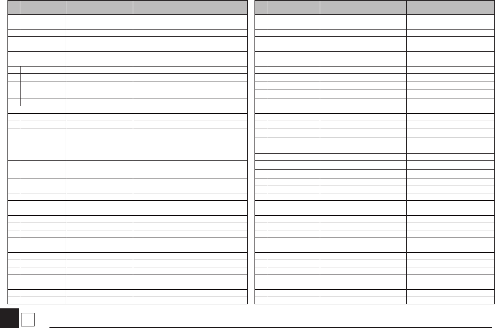 No. Part No. Part Name Uses No. Part No. Part Name Uses