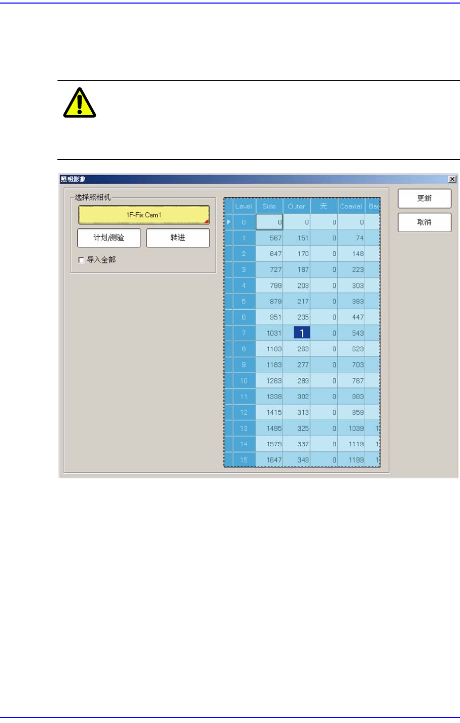 校正摄像机的照明亮度。为了执行此校正要在 ANC的1号孔中插入LightFly吸嘴 或