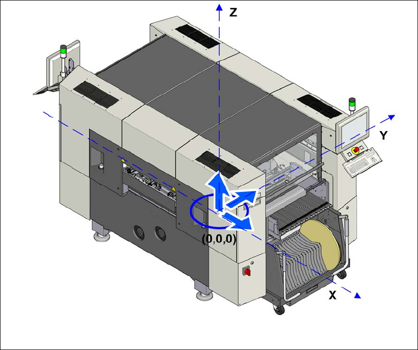 これらの重心座標は、PCB コンベヤ高さ 900mm の実装マシンを基準にしています。