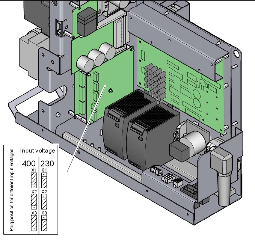 → 変圧器の突入電流リミッタのコネクタの割り付けをチェックします。すべてのメイン電圧