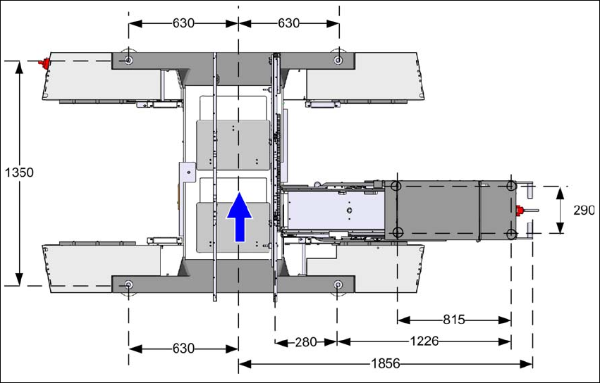 ユーザーマニュアル SIPLACE SX1/ SX2 4 据え付けと委託作業 ソフトウエアバージョン SC.706.xx 以降 2012 年 4 月日本語版 4.3 マシンをセットアップする 207 4.3.7.2 PCB デュアルコンベヤ用マシンの脚間距離 4 図 4.3 - 6 mm 単位の PCB デュアルコンベヤ用マシンの脚 間距離 コンベヤ固定側左 コンベヤ固定側右