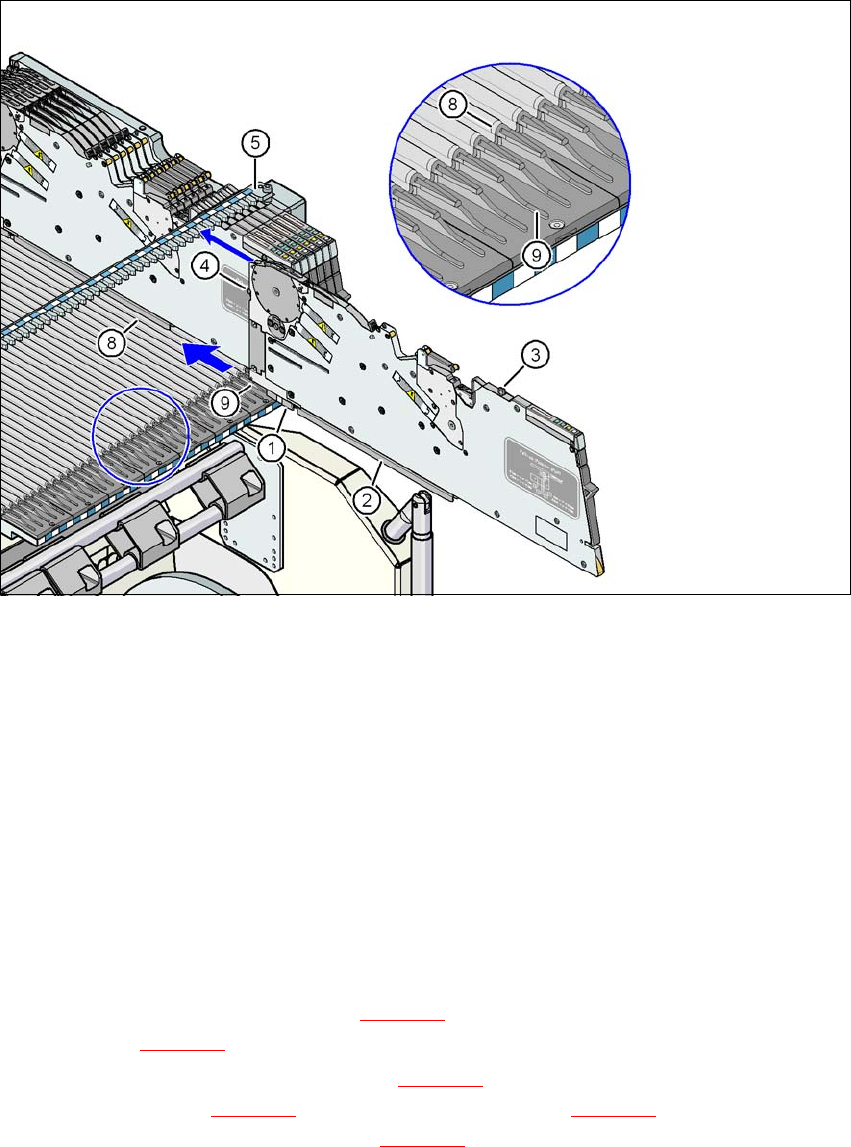 → フィーダの前部スライダガイド(図 5.10 - 3 のアイテム 1)を段取り替えテーブルの挿入