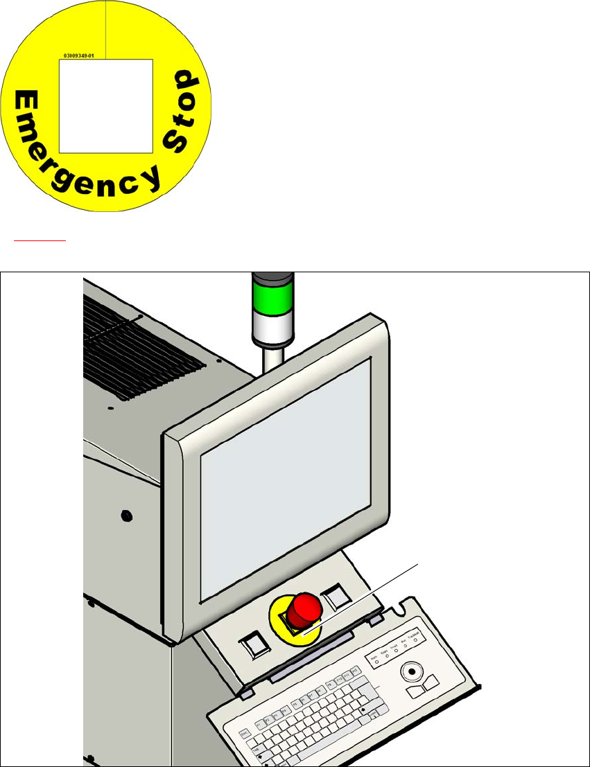 図 2.2 - 9 非常停止ボタンの警告ラベル W209