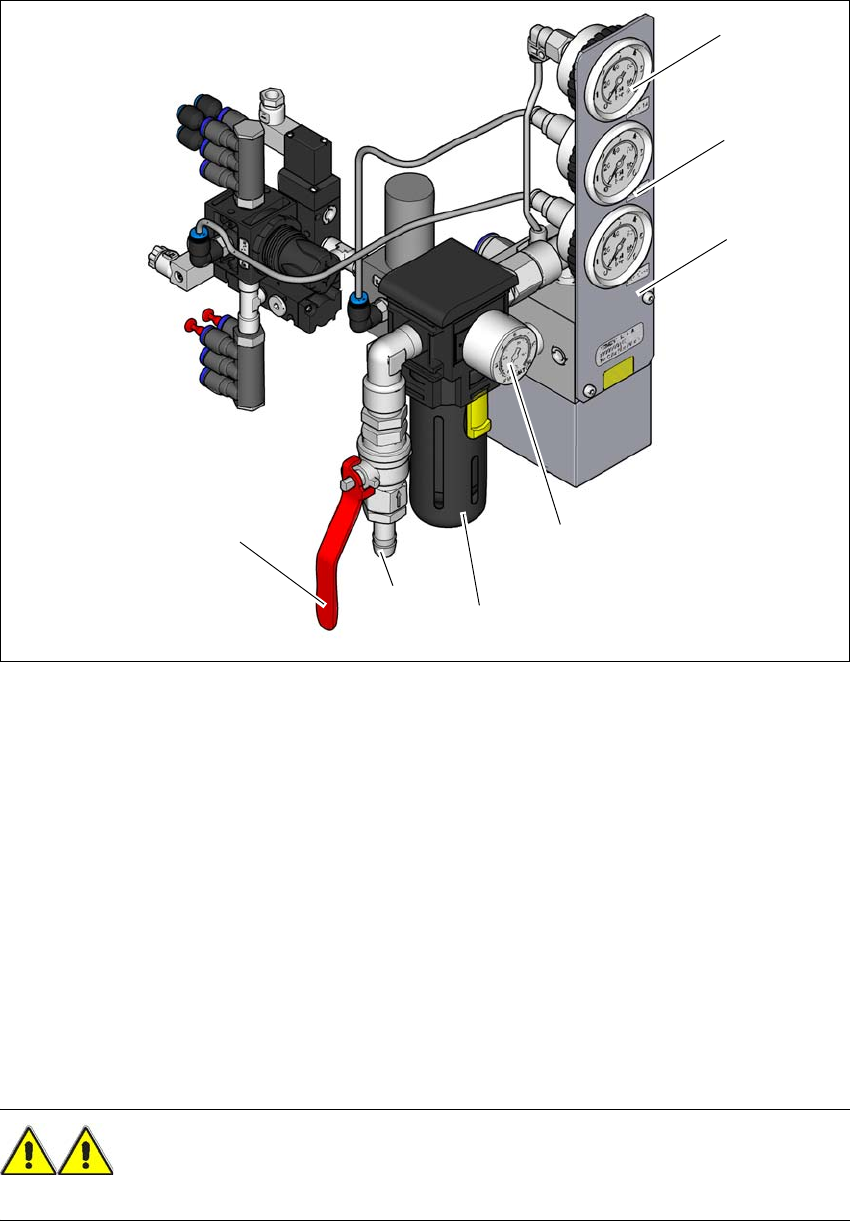 供給圧縮空気は、停止バルブを使用して中断することができます ( ページ 79