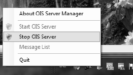 ● Stoppen Sie den OIS Server durch Rechtsklick auf das Symbol OIS Server Manager.